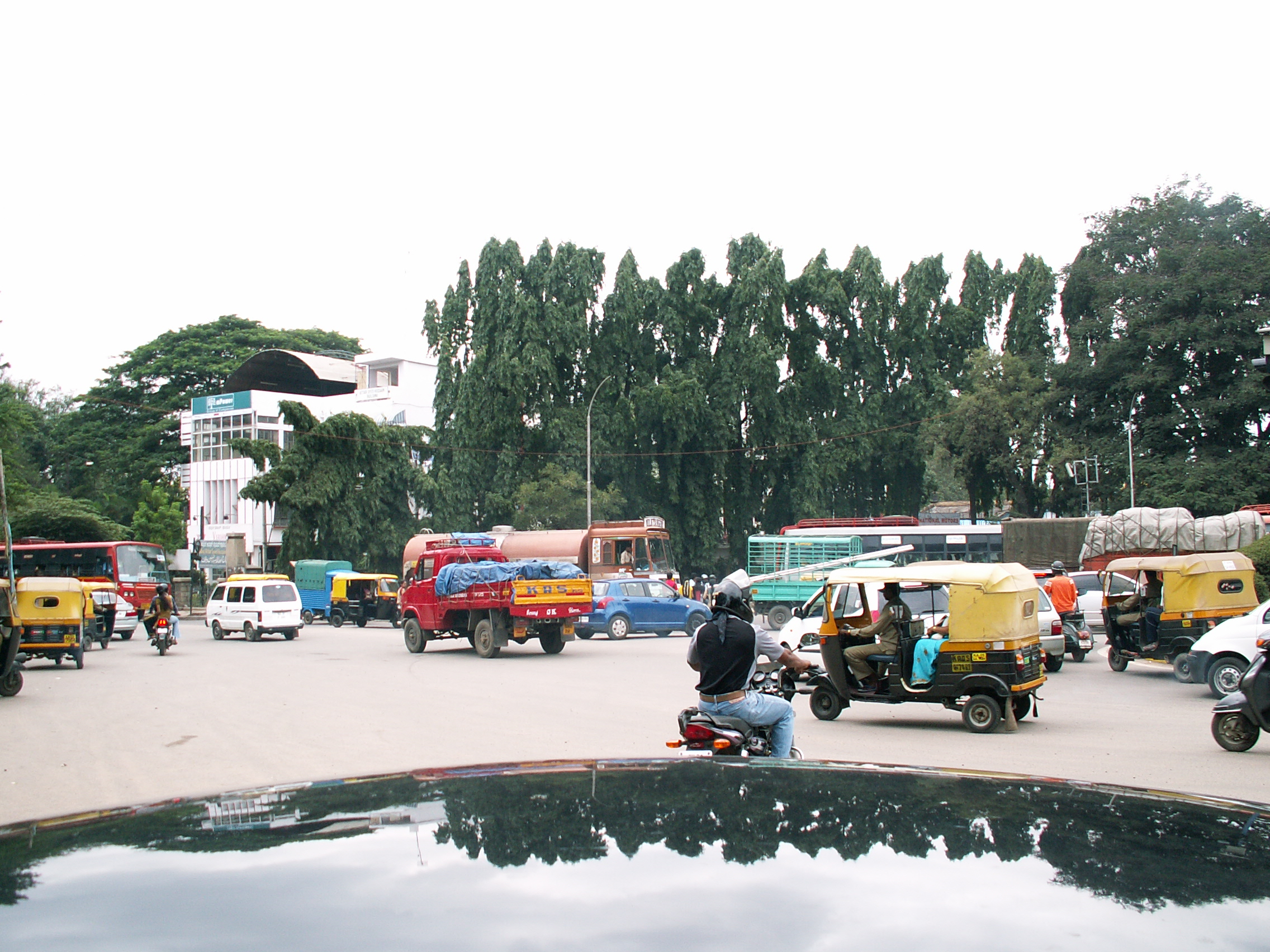 Ez egy közlekedési csomópont. Háromszög alakú körforgalom, ezért nem lehet megállapítani a haladási irányt. (04/24)